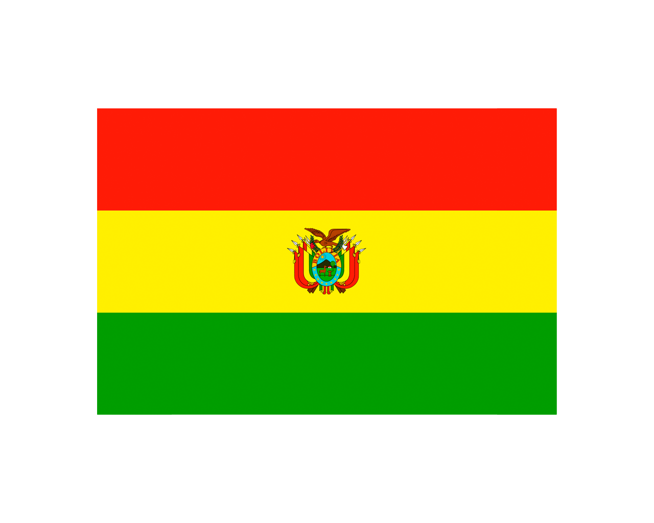 多民族玻利維亞國(Plurinational State of Bolivia),簡稱玻利維亞,是位于南美洲中部的內陸國家,周邊與巴西、秘魯、智利、阿根廷、巴拉圭五國相鄰,法定首都為蘇克雷,實際政府駐地為拉巴斯。玻利維亞國旗啟用于1851年10月31日,國旗呈長方形,長寬之比為3:2。旗面自上而下由紅黃綠三個平行相等的長方形組成,中間繪有國徽。原來紅色象征為國獻身,黃色象征希望,綠色象征神圣國土。現則分別代表玻的動物,礦產和植物。正式場合用帶國徽的國旗,一般場合用不帶國徽的國旗。