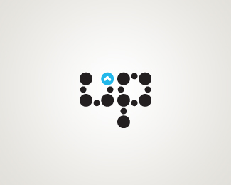 使用幾何圓組合成字母“U”和字母“P”的形狀,整體以黑色和藍色作為主識別色。