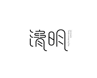 清明節日字體設計欣賞,清明節是中國傳統節日,清明時節雨紛紛的名句也應用在了該字體的設計上,傾斜的線條代表著雨水。