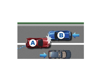 發生如上圖會車時超車事故責任認定時,A車全責,會車時超車,與對面車輛造成事故,要承擔全部責任。