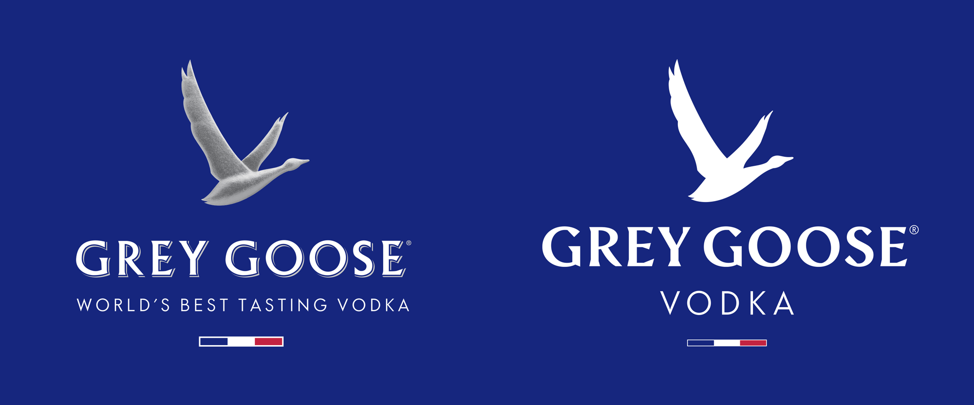的舊標(biāo)志是很好的,即使是在鵝圖標(biāo)和筆畫/陰影文字標(biāo)記上的3D紋理-這兩個(gè)元素都執(zhí)行得很好。新標(biāo)志是一個(gè)堅(jiān)實(shí)的進(jìn)步:鵝現(xiàn)在更多的圖標(biāo),而不是一個(gè)例子,可以存在于不同的顏色、大小,并使用在相對(duì)現(xiàn)在更加自信和引人注目的,強(qiáng)烈的chiseled-like風(fēng)格,保持原文的比例但更有趣而不需要分層的陰影。將他們的口號(hào)“世界上最美味的伏特加”從商標(biāo)中移除,有助于用法國(guó)國(guó)旗的顏色創(chuàng)造一個(gè)更好的鎖定,而且,更少的諂媚,讓人們決定世界上最美味的伏特加是什么。