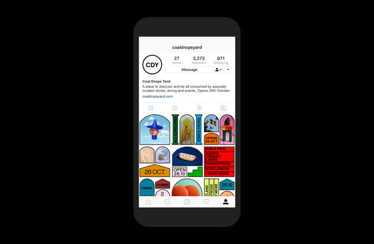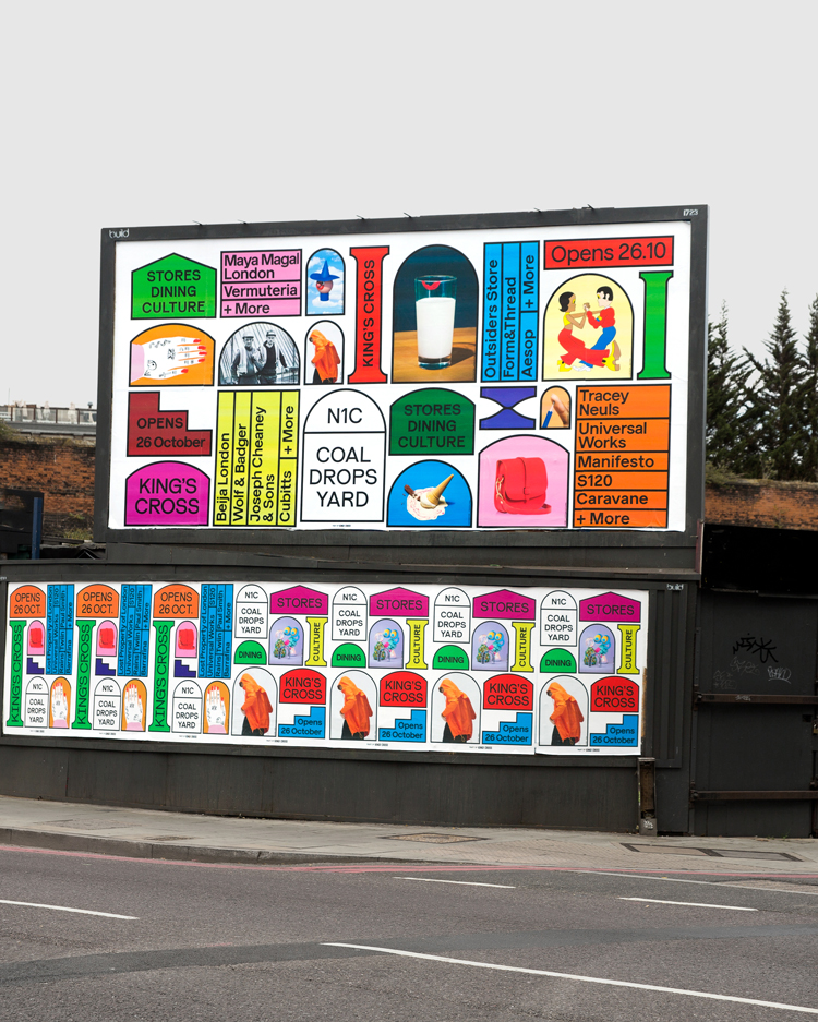 但Coal Drops Yard的品牌暗示并非如此。Droga5廣告公司為這個新的購物區賦予了一個獨特的身份,并發起了一場宣傳活動。品牌以形狀、垂直文字和隨機攝影來表現“多樣性”國王十字車站,同時擺脫了“公司”的形象。購物中心。