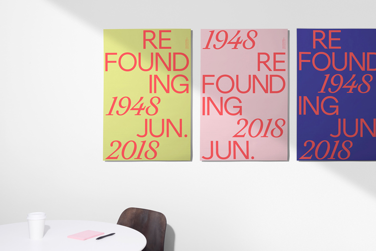 這是一個新的定制的無襯線字體,叫做Ogilvy Sans,一個更新品牌色體系包括深藍色、灰綠色、粉紅色和灰色。